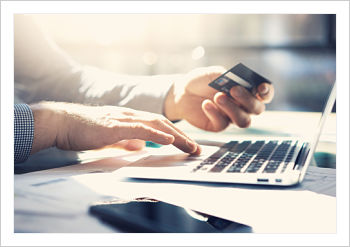 Picture of a man sitting down at a desk with an open laptop, while his hand is on the keyboard and the other hand is holding his debit or credit card.For your convenience, we have created a place to quickly and securely pay your bills online with MyChart. Sign In below to get started.