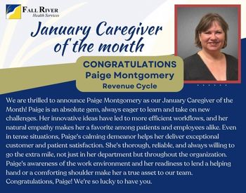 A well-deserved honor for Paige Montgomery, our January Caregiver of the Month! As a valued member of the Revenue Cycle team, Paige's commitment to excellence and passion for providing exceptional care have earned her this recognition. Congratulations, Paige, and thank you for all that you do!