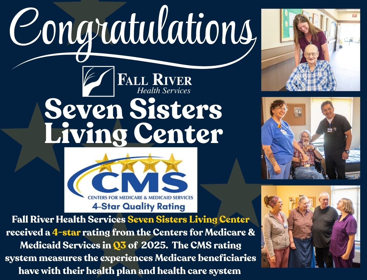 Congratulations to Seven Sisters Living Center on achieving a 4-star rating from the Centers for Medicare and Medicaid Services. This recognition is a testament to your team's hard work and dedication to providing top-notch care. Keep up the amazing work!